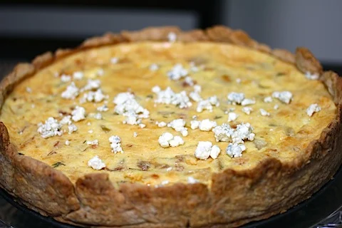 This sweet and savory quiche is one that even those who don’t like Gorgonzola cheese will love this quiche.  Rich and just slightly sweet.  Perfect even for an early appetizer or as a meal.  Serves 6-8 people.